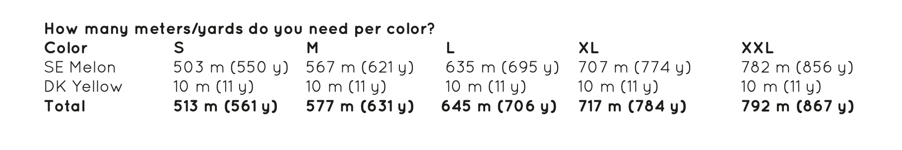 How much yarn do you need, based on the colors in the picture for size S & M ( L & XL, XXL):