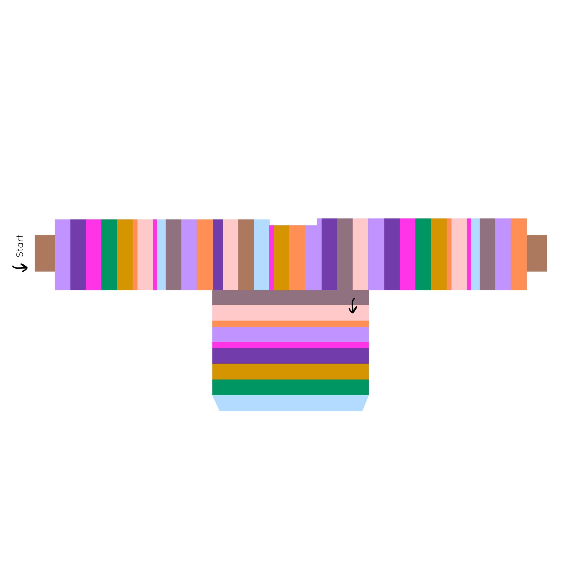 First you knit horizontal, from the cuff, the sleeves, a part of the front, the sleeve to the other cuff. After picking up stitches you knit the body in the round.
