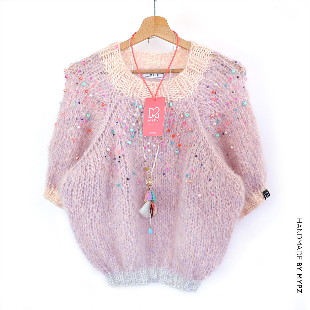 Do you want to extend your sweater? Add 1 ball of MYPZ Chunky kidmohair dk Powder Pink.