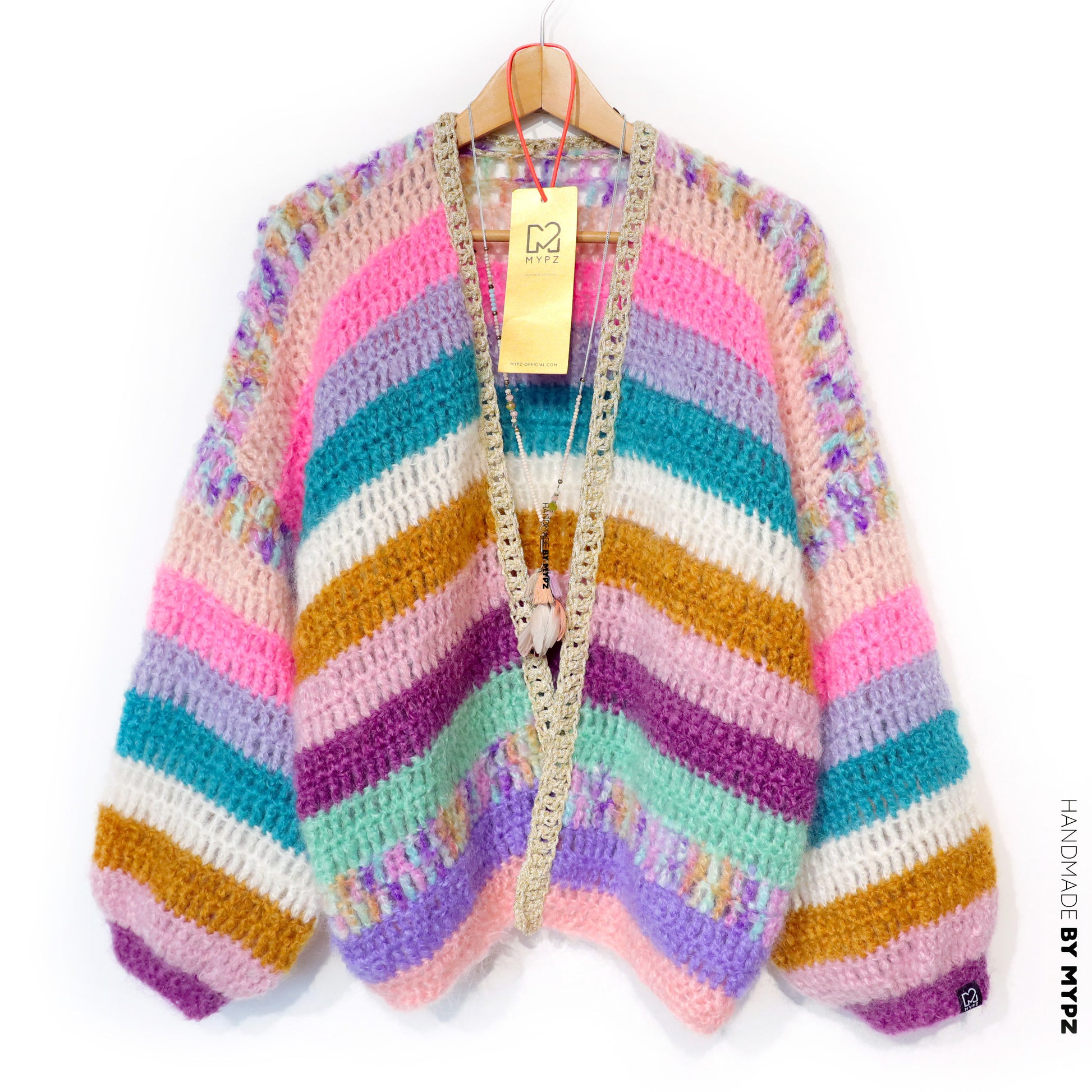 HANDMADE WITH LOVE BY MYPZ | This is a unique handmade luxury mohair cardigan. This beautiful cardigan is made of a high quality kidmohair and does not pill. It is very light, warm and comfortable. These brushed yarns may shed a little but after the first or two washes, this will subside.