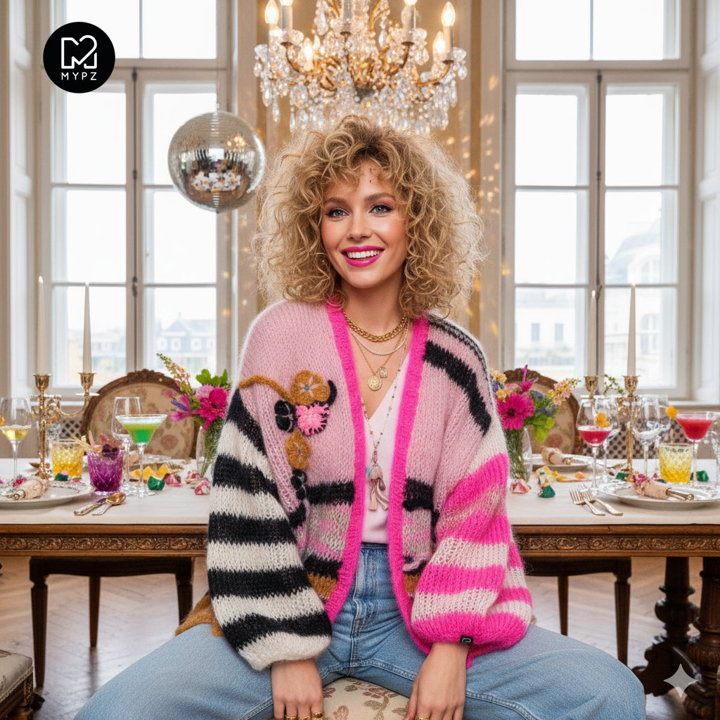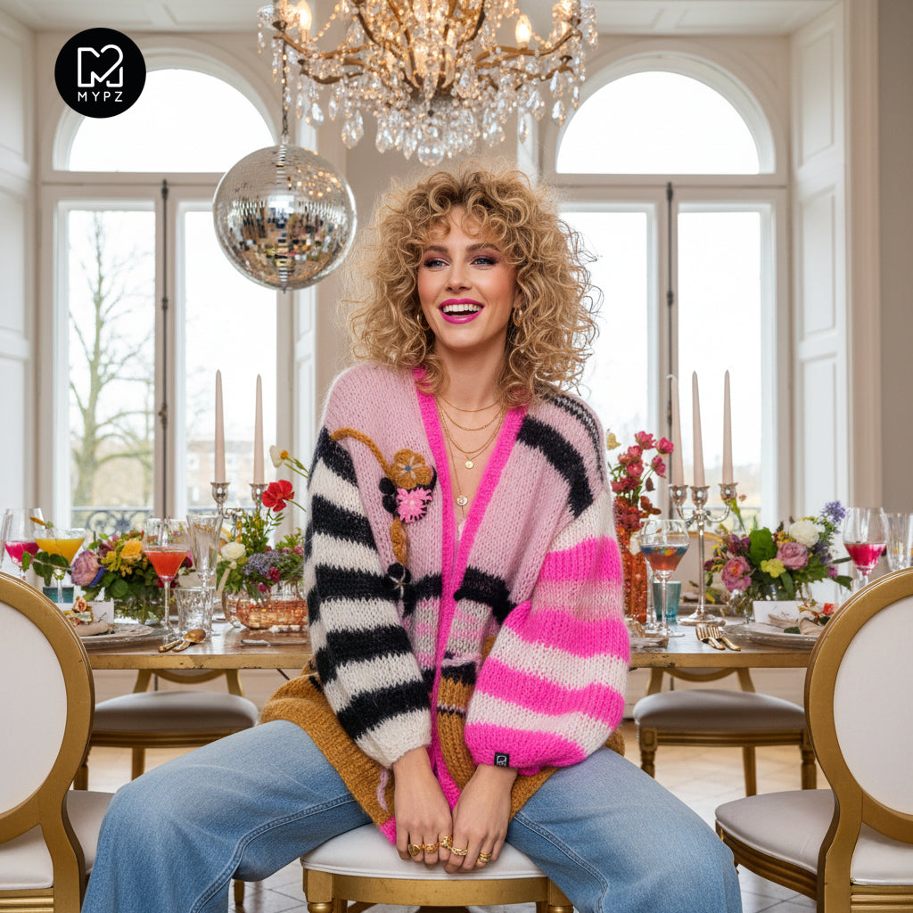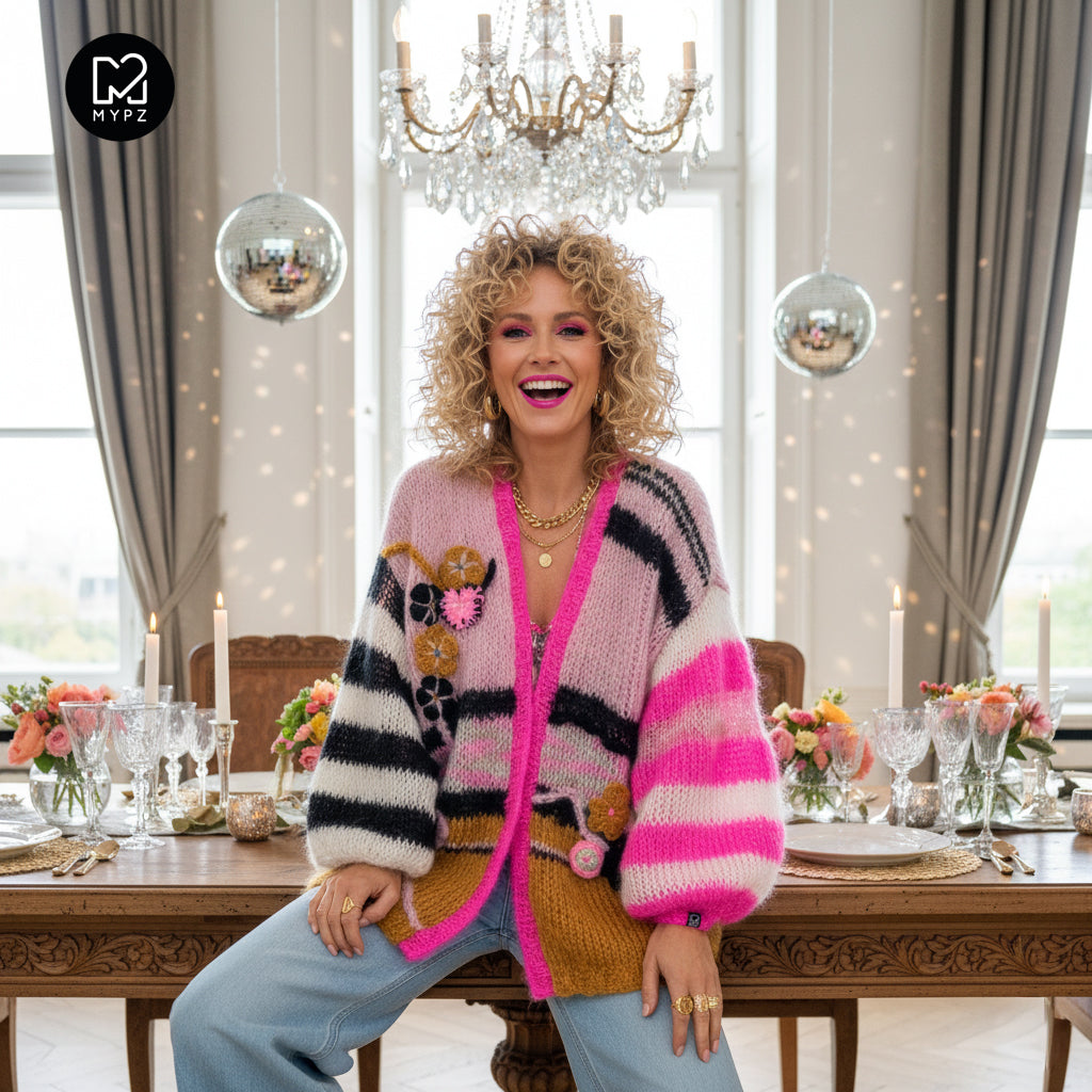 This is a handmade knit made by MYPZ in The Netherlands. Each cardigan or sweater is a unique piece and we take a lot of time and care to create these beautiful products. This beautiful sweater is made of a high quality mohair and does not pill. It is very light, warm and comfortable. These brushed yarns may shed a little but after a while, this will subside.