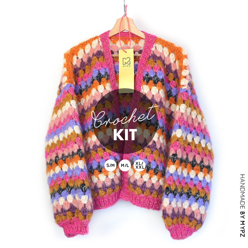 Crochet kit - MYPZ Short Mohair Granny stripes cardigan Rosé (ENG-NL)