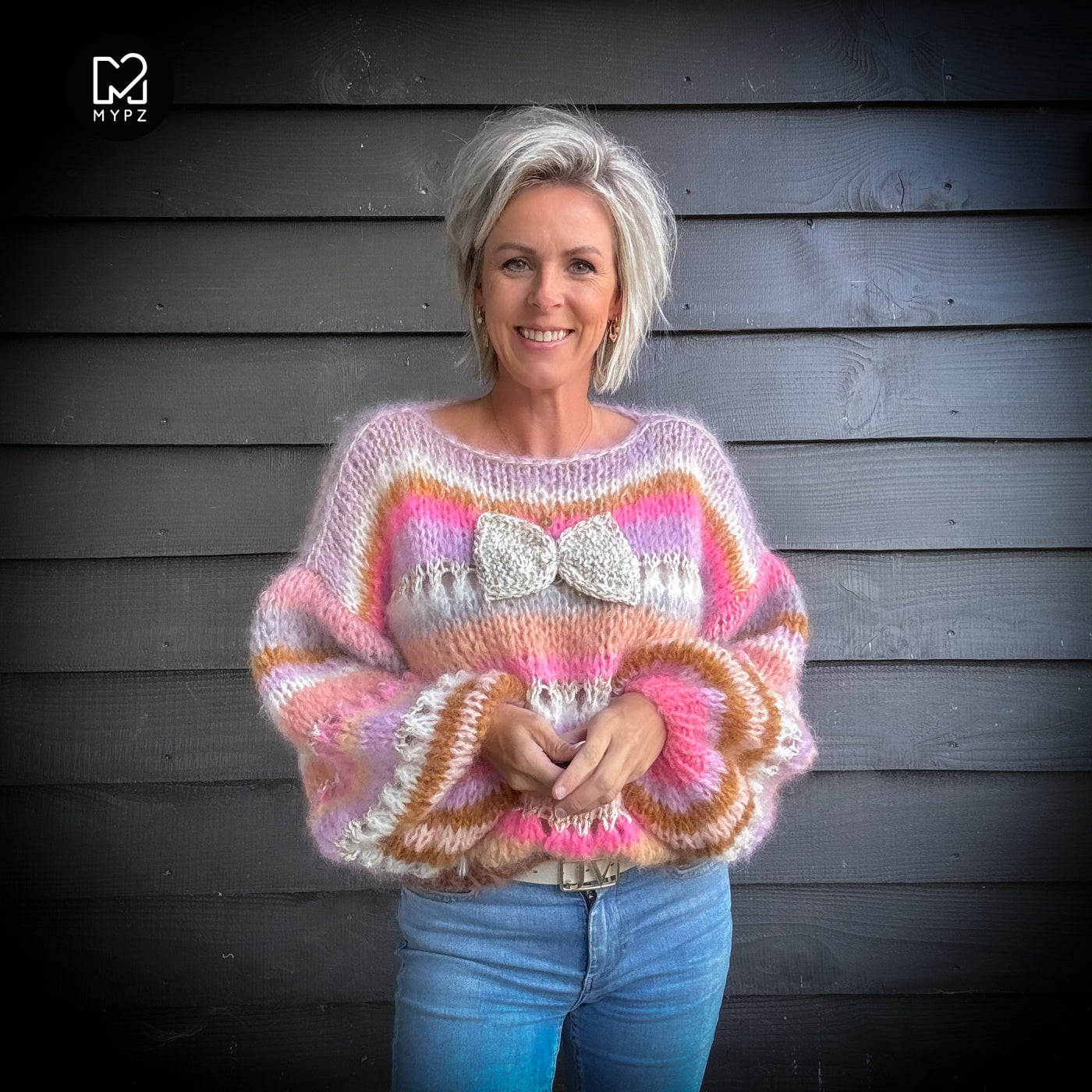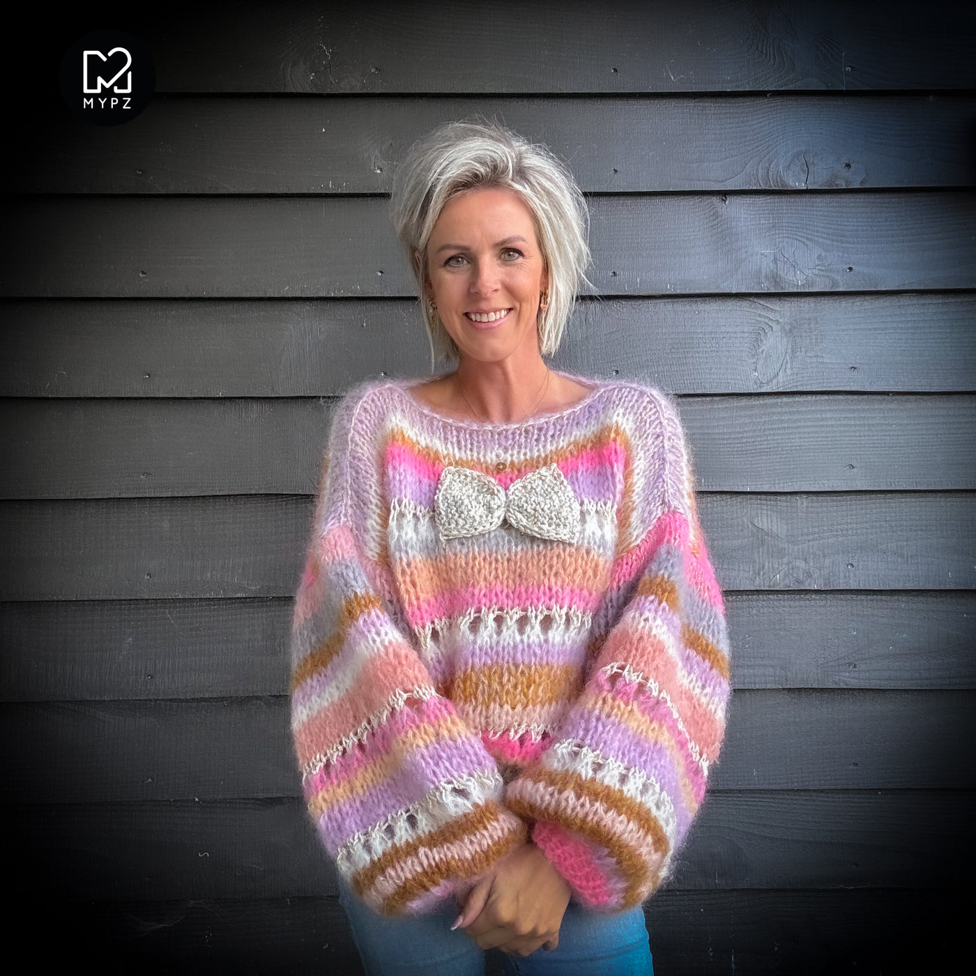 Dies ist ein einfaches Muster. Wir erklären alles, was Sie wissen müssen, und sagen Ihnen Schritt für Schritt, was zu tun ist. Das gesamte Muster wird durch eine Strichzeichnung unterstützt, die die Anzahl der Maschen zeigt. Dieser Pullover ist sehr leicht, warm und bequem. Dieses Set enthält MYPZ Chunky Kidmohair DK, ein hochwertiges, fein gebürstetes Mohair, das nicht pillt. Diese gebürsteten Garne können etwas abgeben, aber nach einer Weile lässt dies nach.