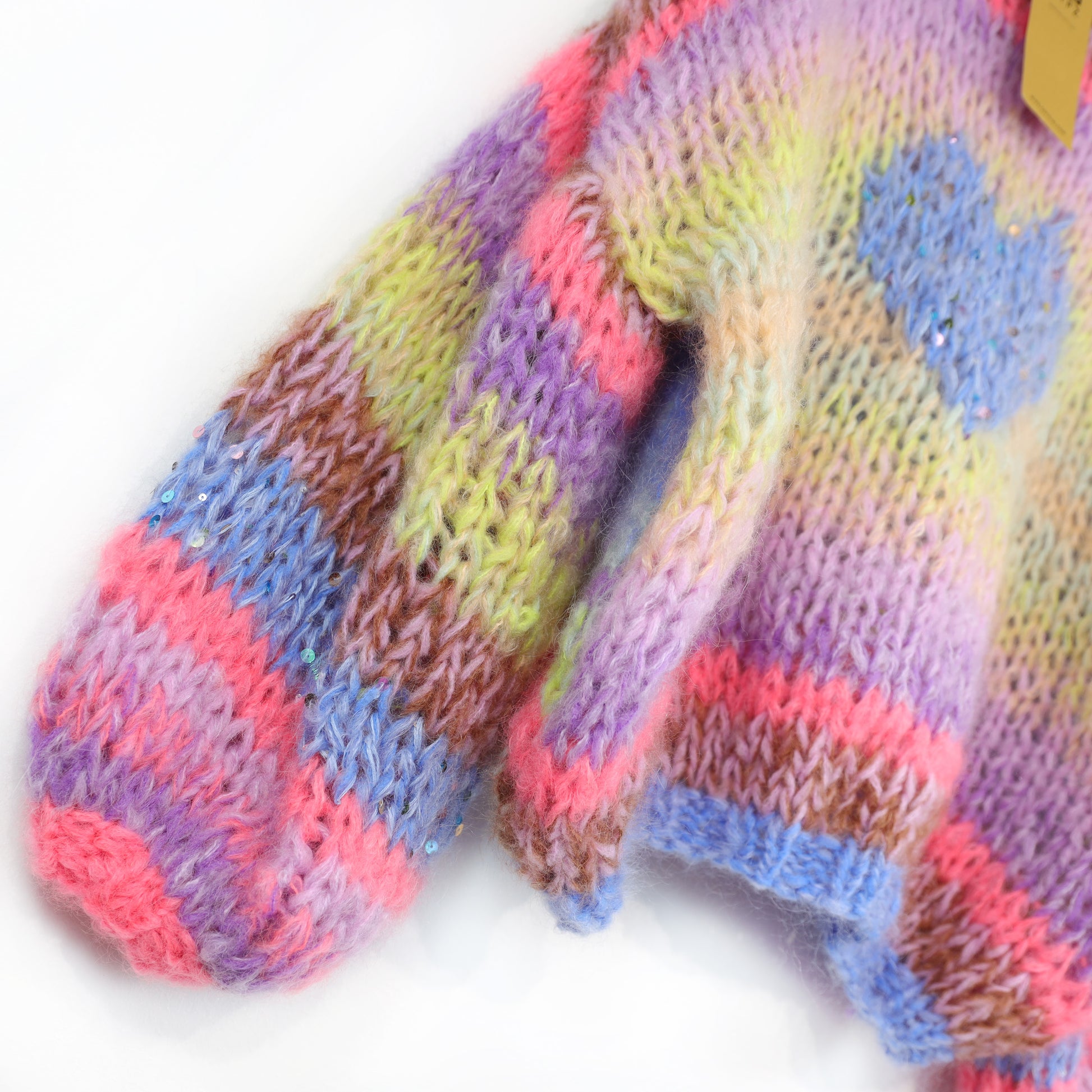 Garn: Sie stricken mit 3 Fäden zusammengehalten: 1 MYPZ Chunky Kidmohair DK + 2 Fäden MYPZ Fluffy und optional MYPZ Starlight für einen besonderen Effekt. OPTIONAL: Das Starlight-Garn muss separat gekauft werden!