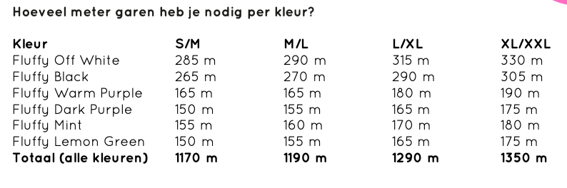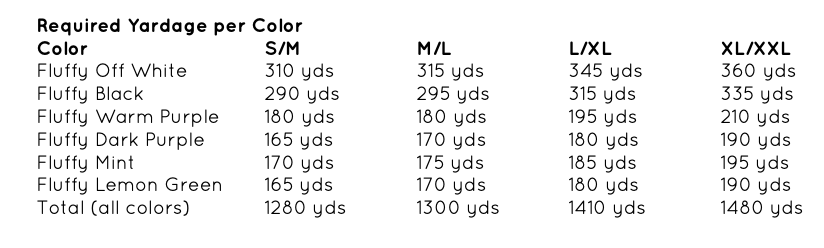 Wie viel Garn benötigen Sie basierend auf Größe S/M, M/L (L/XL & XL/XXL):